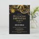 Organisieren Sie Ihre Geburtstagsüberraschung und laden Sie Ihre Freunde und Liebsten mit dieser schwarzen und goldenen Steampunk Uhrwerk Einladung ein.