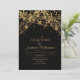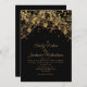 Elegante Hochzeitseinladung mit glitzernden goldenen Saitenleuchten und glitzerndem Bukett auf einem kühnen schwarzen Hintergrund. Kontaktieren Sie mich für Hilfe bei Ihren Anpassungen oder um zusätzliche Matching oder Koordination von Zazzle Produkten für Ihre Hochzeit anzufordern.