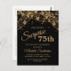 75. Geburtstagsfeier für Frauen mit glitzernden goldenen Saitenleuchten und glitzerndem Buh auf kühlem schwarzem Hintergrund. Da Text anpassbar ist, ist diese Einladung für eine Dame gedacht, die jeden Geburtstag feiert. (18., 21., 30., 40., 50., 60., 70., 80., 90., 100.oder jedes Alter). Text, Schriftart und Wortlaut sind vollständig anpassbar. Kontaktieren Sie uns für Hilfe bei der Anpassung oder der Anpassung von Produkten.