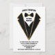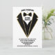 Celebrate single life one last time and invite your pals with this black and gold tuxedo bachelor party invitation.