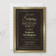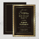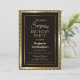 Eine moderne Überraschungsfeier zum 18. Geburtstag mit einem goldenen Rahmen in einem goldgelben Rahmen mit diagonal gestreiften Rahmen auf schwarzem Hintergrund.