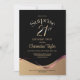 Diese moderne Schwarz-Gold-Überraschung 21. Geburtstag Party Einladung verfügt über ein Schwarz-Gold-Farbschema, getrennt durch eine Flüssigkeitswelle und ein stilvolles rosa Band, das von einer Seite zur anderen fließt. Der individuell gestaltbare Textbereich ermöglicht es Ihnen, mühelos alle notwendigen Details für Ihre Geburtstagsfeier, einschließlich Datum, Uhrzeit, Veranstaltungsort und UAWG, einzubinden. Ob Sie eine gemütliche Ansammlung oder eine große Affäre für Ihren Ehrengast planen, diese zeitgenössische Einladung wird Ihre Gäste begeistern.