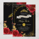 Black Gold und Rote Rosen Königliche Krone Quinceañera Einladung