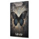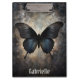 Ein schöner schwarz-dunkelblauer Schmetterling auf einem strukturierten Grundurhintergrund schafft eine wunderschöne Gotische Clipboard. Personalisieren Sie Ihren Namen ganz unten. Der Rücken ist schwarz.