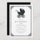 Elegant Gothic Baby Shower Invitation. Our Gothic Baby Shower Invitation features a beautiful black ornate gothic-style stroller set against a pristine white background, all enclosed within an elegant frame Personalize with your details.