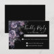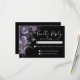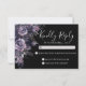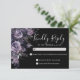 Till Death Do Us Part Dark Gothic Wedding RSVP or Reply Card — designed to match a moody, romantic wedding theme. This version features a mix of deep purple, dark gray, and black flowers and leaves for a soft boho gothic touch. The florals are placed along the left side of the card. On the top right, the phrase "Kindly Reply" is written in an elegant script font, with the RSVP information below in classic serif typography for a timeless and formal look. The back is a solid black background for a clean and dramatic finish. This dark and modern botanical style is perfect for autumn, fall, or winter weddings, or anytime you want a dark, elegant, and sophisticated look. All fonts and background colors can be customized to match your event. This card is available as a printed RSVP enclosure or as a downloadable digital file you can send via email or have printed locally.