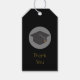 Ein Dankeschön Geschenktag entworfen mit einem schwarzen Graduierdeckel mit einem halbtransparenten Kreis hinter sich. Schwarzer Hintergrund mit goldener Schrift ist einfach, aber stilvoll.