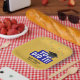 Schwarzer Abschluss mit Konfetti auf goldenem Hintergrund