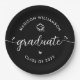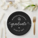 Be proud, rejoice and showcase this milestone of your favorite grad! Celebrate with these simple, modern, bold custom paper plates. Fun white handwritten calligraphy script with cute, playful hearts and a graduation cap icon overlay a black background. Personalize the custom text with your graduate’s name and class year or special message. Available in 2 sizes: 7” or 9”, round or square. Matching invites, thank you cards, hand fans, banners, yard signs and other graduation goodies are also available in this trendy and playful collection. Guaranteed to add stylish fun to their special party!
