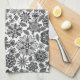 Kitchen Towel and home decor accessory printed with Black And Gray On White Retro Floral Art Seamless Pattern original hand drawn graphic design artwork illustration by TheFabricSeal print on demand shop at Zazzle.com #ZazzleMade ©️Original. https://www.zazzle.com/store/thefabricseal
