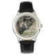 Uhr, Klassische Damenuhr mit schwarzen Lederarmband