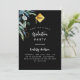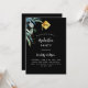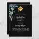 Ein klassischer schwarzer Hintergrund, mit Grünpflanzen dekoriert. Eine goldene Kappe mit dem Abschluss Jahr. Personalisieren und fügen Sie einen Namen und Party-Details hinzu.