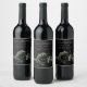 Black Green Eucalyptus Monogram Wreath Wedding Weinetikett