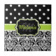 Elegantes schwarz-weißes Damast-Muster mit Polka-Punktmuster. Dieses trendige Girly-Geschenk enthält einen schwarzen, grünen und weißen Typenschild für Ihren individuellen Namen und Ihre Monogramm. Das wäre ein cooles Geburtstagsgeschenk für Mädchen oder ein Weihnachtsgeschenk für sie. Weitere Farboptionen