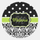 Black Green Mit Monogramm Damask Polka Dots Muster Runder Aufkleber