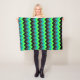 Eine kleine Fleecedecke mit elegantem Muster aus farbenfrohen Chevrons in Schwarz, Grau, Grün und Türkis.