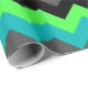 Eine Rolle Papier mit einem eleganten Muster aus bunten Chevrons in schwarz, grau, grün und türkis.