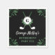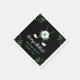 Give the golf-themed retirement party a personalized touch with monogrammed cocktail napkins, with the retiree's name in a white script, the event beneath, and above in a golf-themed monogram with crossed golf clubs and a laurel wreath, the retiree's name. The retirement par-tee napkins has customizable text in white and green against a black background, with greenery in the corners.