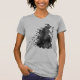 Lady's T-Shirt mit Aquarell-Grafiken von einer schwarzen Silhouette einer Hexe mit einem Personal, mit Haken von Fledermäusen aus hinter ihr. Passen Sie dieses coole Halloween inspiriert Shirt mit Ihrem eigenen Text an.