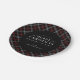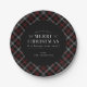 Black Holiday Plaid Christmas Party Paper Plates. White typography on black background with coordinating holiday plaid pattern border.