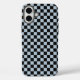 A seamless pattern of alternating black and light blue squares creates a classic checkerboard effect. The design is symmetrical and evenly spaced.