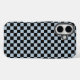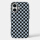 A seamless pattern of alternating black and light blue squares creates a classic checkerboard effect. The design is symmetrical and evenly spaced.