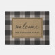 Fügen Sie dem Eingang eine Touch im Bauernstil hinzu, mit diesem rustikalen Büffel karierte gemusterte Türmchen in dunkelbeige und schwarz mit bräunlichen Akzenten. "Willkommen" erscheint in der Mitte in lässigen handgeschriebenen Schriftzeichen; personalisieren Sie sich mit Ihrem Familiennamen unten.