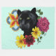 Ein Schwarz Jaguar Katzenportrait mit bunten mexikanischen Fliesen und Blume.