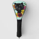 Ein Schwarz Jaguar Katzenportrait mit bunten mexikanischen Fliesen und Blume.