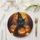 Black Kitten in Hexenhut Amid Halloween Pumpkins Pappteller