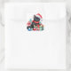 Black Kitten in Weihnachtsmannmütze Frohe Weihnach Quadratischer Aufkleber