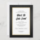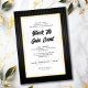 Dieses Gala-Dinner in der Black Krawatte bietet ein stilvolles Design mit schwarzem Hintergrund und hellgrauen Streifen. Ein weißes Feld mit einem goldenen Rahmen enthält einen benutzerdefinierten Text, in dem Sie Ihre Veranstaltungsdetails hinzufügen können. Das Design vermittelt ein Gefühl von Klasse und Eleganz und gibt den Ton für ein unvergessliches Ereignis an.