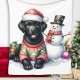 Black Labrador Puppy Dog Snowman Winter Holiday Fleecedecke