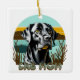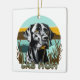 Personalisierte Weihnachtsschmuck. AI Kunst Aquarell schwarzes Labor mit einem Vintagen Sonnenuntergang mit Retrofarben aquamarin und braun.