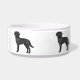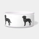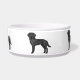 Desteis originelle Cartoon-Illustration eines schwarzen Labrador Retriever Zuchthundes. Das Hundedesign wird mehrmals auf diese Schüssel gelegt, sodass die Hundeabbildungen das Produkt umgehen. Dieses Design ist ideal für jeden schwarzen Lab Hundebesitzer, der nach einer lustigen und charmanten Schüssel für das Abendessen oder das Wasser seines Hundes sucht.