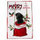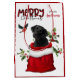 Das Bild auf der Vorder- und Rückseite dieses Weihnachtsgeschenksacks ist ein Bild eines niedlichen Schwarzen Labrador Retriever Welpen, der aus einer Holiday-Geschenktüte herausguckt. Hinter ihm steht ein Gezeter aus heiligen und roten Beeren. Ein roter und schwarzer Bullfinch-Vogel wird bald landen. Stilisierter, roter und schwarzer Büffel karierter Text sagt MERRY CHRISTMAS". Ihre eigene Unterschrift ist in zwei Felder für Sie zu personalisieren. Schauen Sie sich die passenden Produkte an, einschließlich der Ornamente, in unserem Shop.