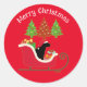 Black Labrador Silhouette Weihnachten Sleigh Red Classic Round Sticker. Schwarzes Labrador sitzt auf dem Schlitten des Weihnachtsmanns im Wald. Erstellt von Naomi Ochiai.