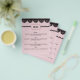Create a beautiful menu for celebrating your special day. These simple small paper sheets have pretty, modern look. This design features my black lace illustrations set against a soft pink background. On the front you can customize the course names and food descriptions with your own text. On the reverse side you can personalize these menus with the name of the bride and groom and the wedding date.