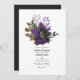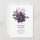 Schwarze und lila florgotische Hochzeitseinladung mit Goldakzenten, die Ihren Veranstaltungsspezifikationen angepasst werden können. Ideal für jede Art von Thema oder Gartenhochzeit. Der QR-Code auf der Rückseite führt zu Ihrer Hochzeitsstelle, wo die Menschen mehr und uAwg lernen können.