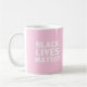 Black Lives Matter rosa und weiß moderne Typografie Coffee Tasse. Weiße moderne Typografie auf hellrosa schlichten soliden bearbeitbaren Farbhintergrund.