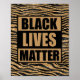 Soziale Gerechtigkeit thematische Wandkunst mit einer Touch von glam! Typografie Stil Black Lives Matter auf glam schwarz und gold Glitzer Tiger Streifen Hintergrund