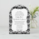 Romantische elegante Schwarz-Weiß-Love-Bird Damask Einladung Hochzeit. Ideal für die elegante mittelalterliche Renaissance oder Viktorianische Hochzeitsthemen.