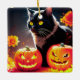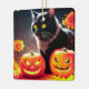 HALLOWEEN DEKOR-ORNAMENTE. Black Magic Cat mit Pumpkins Keramik Ornament . Schöner Schwarzer Katzenmagick für Halloween-Fun-Dekor. Blume Kürbisse und die Vintagen Retrofarben der 70er Jahre sorgen für eine heitere Atmosphäre. Für Katzenmütter überall Katzenjunges und Katzenliebhaber.Happy Halloween!