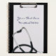 Berufliches, klassisches Business-Design für medizinische Zwecke: eine schwarze Leder-Zwischenablage mit leerem Papier und ein Stethoskop. Ideal für alle Geschäfte im Gesundheits- und Gesundheitswesen wie z.B. ein Arztbüro, eine Arztpraxis, eine Klinik oder ein Krankenhaus. Für Krankenhauspersonal, Ärzte, Krankenschwestern; elegant, elegant und elegant.