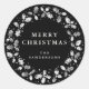 Black Merry Christmas Holly Wreath Weihnachten Runder Aufkleber