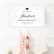 Herzlich willkommen zu Ihrer Veranstaltung mit diesem individuell gestaltbaren Abschluss Willkommensbanner. Es zeichnet sich durch eine moderne schwarze Kalligraphie, einfache Typografie und eine Graduierungskappe aus. Personalisieren Sie das Schwarzweiß-Abschluss-Zeichen, indem Sie Ihre eigenen Daten hinzufügen. Dieses kalligraphische Abschluss-Banner ist perfekt für jeden Abschluss. Andere Farben sind verfügbar.
