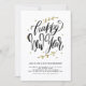 Black Modern Calligraphy and Wreath New Year Party Einladung