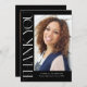 Black Modern Elegant Vertical Two Foto Abschluss Dankeschön Sie Card bietet eine lustige und moderne Art, zusammen mit Ihrem Abschluss Foto. Fügen Sie Ihre Dankeschön auf der Rückseite hinzu, oder verlass leer für eine handgeschriebene Nachricht.