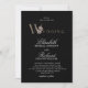 Dieses elegante Schwarz-Weiß-Hochzeitsangebot besticht durch seinen eleganten Schriftart mit einer Bronze-Shining-Orchidee und einem weißen Text auf schwarzem Hintergrund. Die Rückseite der Einladung ist einfach schwarz.