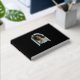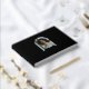 Gedenken Sie Ihre Feier mit einem persönlichen und eleganten Gästebuch für Graduiertenabende. Das solide schwarze Cover zeigt das Foto des Absolventen, das in einen Bogenrahmen geschnitten wurde und durch einen dünnen Rahmen und das Wort "grad" im modernen, eleganten Silberfolientext hervorgehoben wird. Fügen Sie eine persönliche Touch mit individuell angepassten Foliendetails hinzu, wie z. B. das Schuljahr, den Namen des Absolventen und die Schule. Der Rücken bietet auch Platz für einen Silberfolientitel, was dieses Gästebuch zu einem stilvollen Sake macht, der für viele Jahre geschätzt wird. © Kimbellished, LLC